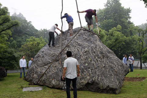 此石由本寺方丈净芳大和尚之皈依弟子吴兴丰居士出巨资购置并敬赠炉峰禅寺供养的“镇山之石”。