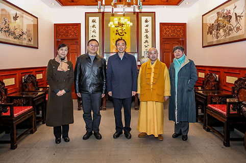 2月13日下午,绍兴市关工委陈国阳主任、王敬金专职副主任、陈启文秘书长一行专赴炉峰禅寺慈善联合会,拜访净芳会长并致送荣誉证书,诚挚感谢慈联会和净芳会长为关心下一代工作所做的贡献。