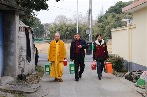 上门送温暖,岁寒情意深 1月9日,净芳会长来到皋埠街道胜利村,上门慰问身患重病不能参加爱心年夜饭的罗师傅和陶大爷,向他们送上慈联的祝福和节日的慰问。