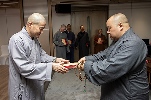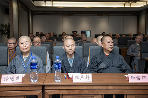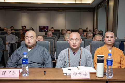 了如副会长受净芳会长委托,代表绍兴市佛协致辞。他指出,推动佛教健康传承要以经典为依归,持续培养高素质僧才,通过学习新媒体等技术手段拓宽弘法利生路径;僧才间不断加强交流互鉴,凝聚共识,共建和合僧团,使佛法更好地融入现代社会,引导广大信众正信正行,为促进社会和谐贡献佛教的智慧与力量。