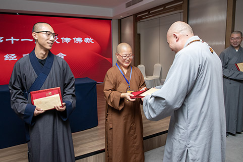 本次讲经交流会最终评出一、二、三等奖,绍兴市佛协了如副会长,嵊州市佛协常安会长、通果副会长、常辉副会长、然祥副会长担任评委,并分别为获奖法师颁发荣誉证书。