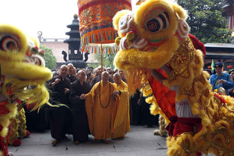 中午,净芳大和尚在寺院大斋堂以佛教过堂的形式答谢大众。法主和尚松纯长老慈悲开示,市民宗局吴军副局长致辞祝贺,严成武处长、王威明副处长和省、市佛协相关领导应邀莅典,诸山大德、释门道友、四众弟子、嘉宾友朋2000余人同聚共欢,融洽无间,炉峰禅寺监院了德法师主持盛筵。置身于欢乐祥和的喜庆场面,感受佛门大家庭的和谐氛围,处处庄严有序,人人春风扑面,众缘和合,欢喜赞叹。