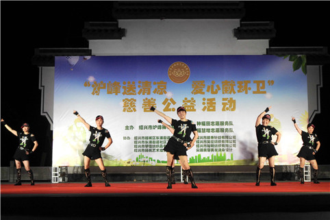 晚上7点,慈善公益晚会在该村文化广场大舞台正式开幕,邵芷玲秘书长专赴活动现场致辞,绍兴电视台小庆师母特意前来,和陈建平、胡佳浩两位义工搭档,一起主持节目,“开心老太”王勇等应邀助阵。16个节目,不少是由义工们自编自演的,架子鼓、小品、曲艺等精彩演出,精彩纷呈,为在场的环卫工人和观众献上了一场夏日的清凉秀。晚会气氛热烈,不时爆发出欢乐的掌声。
