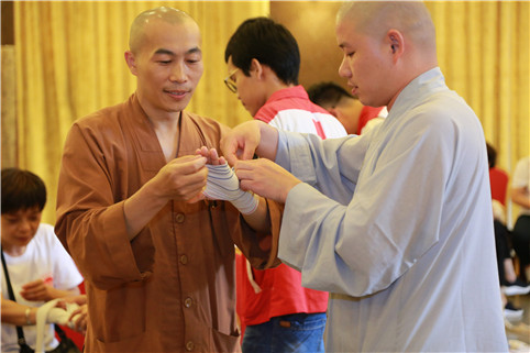 8月9日,为提高僧众职工及慈联会员工、义工的应急救护能力,炉峰禅寺慈联会在寺院大斋堂举办AED救护员培训,近40位学员参加。绍兴市红十字会给予积极支持,省一级应急救护员培训师王玉兰应邀担任主讲,省二级应急救护员培训师许敏三等现场助教。