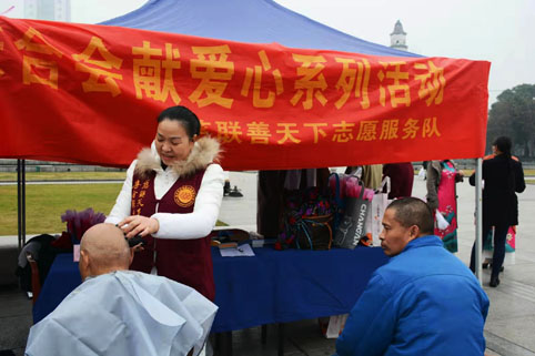 12月17日,由市商务局主办的家政服务业信用体系建设专题活动在市区城市广场举行,慈联善天下志愿服务队参加,提供理发、测血压血糖、义演等服务。
