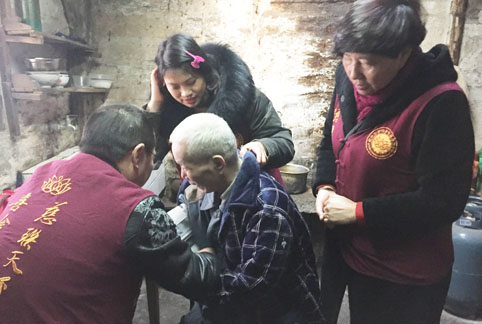 1月13日、14日,慈联康乃馨志愿服务队深入社区和乡村,看望慰问15位在大龙市场坚持免费施茶的高龄老人和15位贫困家庭、残疾人、孤寡老人和抗战老兵,向他们送上慈联会精心准备的慰问品,开展理发、义诊等服务。