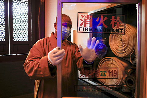 净芳大和尚实地检查防疫期间殿堂卫生安全工作