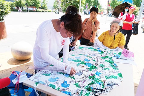7月21日上午,慈联益启爱志愿服务队参加96345“越志愿·爱传递”公益集市,为市民量血压、理头发、裁衣服,发放垃圾分类宣传单,受到大家的欢迎。