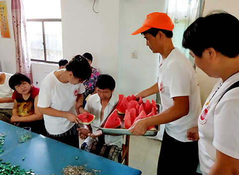 8月16日,慈联益启爱志愿服务队开展“夏日送清风 关爱残疾人”活动,为陶堰残疾人之家送上夏日的清凉,与残疾人交流谈心,一起干活,送上浓浓的关爱。