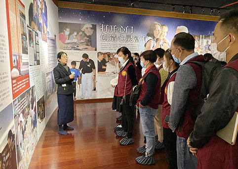 在慈济志工的带领下,考察组一行参观了慈济志业导览馆,聆听慈济的缘起和发展,了解慈济近年来在各地开展的济贫助学、灾后重建、医疗援助、骨髓捐赠、社区服务等方面的工作。