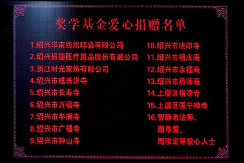 10月27日下午,由绍兴市炉峰禅寺慈善联合会联袂市关心下一代工作委员会共同主办的“炉峰慈联•天天向上”2019学年奖学金颁发仪式在上虞区职业教育中心举行,490名贫困家庭的优秀学生获得总计88.15万元奖学金。