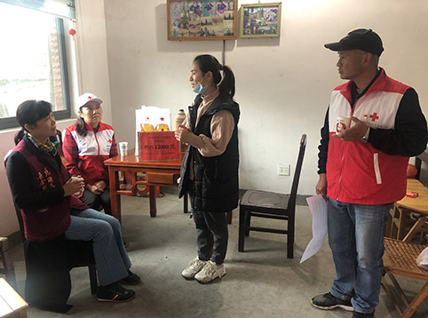 最后,慰问组一行赶赴嵊州下王镇,慰问肝癌患者小俞。患者2018年被确诊为肝癌,并进行多种介入治疗,花光了家里所有的积蓄,还欠下外债,但不幸于9月去世。母亲也因癌症去世。父亲在老家种地,儿子还在上学,家庭主要收入靠妻子打工养家,生活非常艰苦,下王镇红十字会领导陪同慰问。此次慰问组送上1.2万元救助金,希望能暂缓其家庭压力。