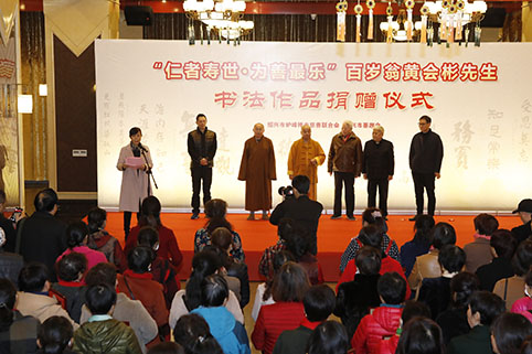 11月28日,炉峰禅寺大斋堂内暖意融融,翰墨飘香,“仁心寿世•为善最乐——百岁翁黄会彬先生书法作品捐赠仪式”在这里隆重举行。绍兴市墨趣会会员、百岁老翁黄会彬先生将自己精心创作的21幅书法作品捐赠给炉峰禅寺慈善联合会,以支持公益慈善事业,并即席致辞,表达自己的心意。