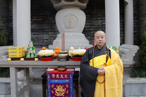 12月21日(农历十一月初七),时值冬至吉旦,炉峰禅寺方丈净芳大和尚率全山僧众齐聚护法殿西坡塔林前上供,虔诚祭祀本山历代祖师。