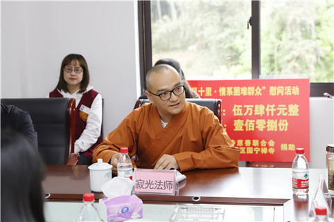 上虞区佛协副会长、国宁禅寺监院寂光法师主持座谈会。他在介绍情况时指出,国宁禅寺成为慈联会“慈善文化基地”后,致力开展形式多样的慈善活动,继2020年春节及疫情期间为当地困难群众办实事、送温暖,本次“春风十里•情系困难群众”慰问活动中又捐助54000元善款,专用于帮助因疾病、意外事故等遭致生活困难的村民,为他们带去物质上的帮助和精神上的安慰。