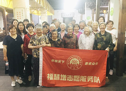 5月9日母亲节,慈联福慧增志愿服务队的志愿者们陪着福全街道容山村的25位老妈妈,专赴市区聚缘轩享用素斋,随后又一同欣赏水街夜景,共度美好、快乐的母亲节。