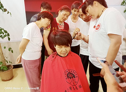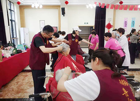 志愿者发挥一技之长,为10多位老人提供免费理发服务,并给他们送上玫瑰花,献上越剧、舞蹈、舞台秀等精彩的节目,博得了老人们的阵阵掌声。
