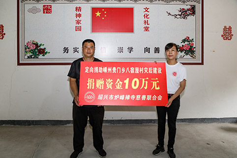 9月9日当天,邵芷玲秘书长与十几名志愿者,载着满满几车慰问物资,来到贵门乡八宿屋村,并通过嵊州市慈善总会,向该村定向捐赠10万元爱心款,用于该村灾后重建工作。
