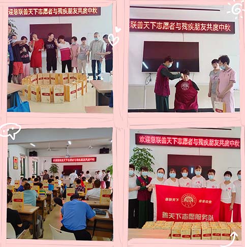 有的志愿服务队专赴一些老弱病残的困难家庭,送去月饼和慰问品。