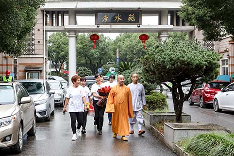 在越城区秀水苑,净芳会长一行看望了百岁老人赵素琴。得知老人身体健康、饮食起居有规律,净芳会长欣慰地希望家人好好照顾老人,让她安享晚年。其女儿感动地说:“想见大和尚是我母亲一直来的心愿,今天大和尚亲自上门看望我母亲,圆梦成真,福气多多,真的太感恩了!”