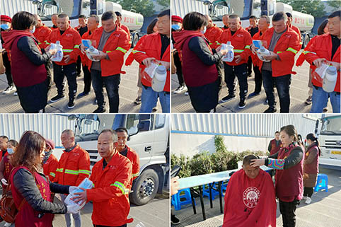 11月25日,慈联种福田志愿服务队的12位志愿者专抵浙江飞龙环境服务有限公司门口,开展“爱心献环卫 温暖你我他”志愿服务活动,为环卫工人提供理发、保健按摩、测量血压等志愿服务,送上洗衣液、口罩等日用品,慰问城市美容师。