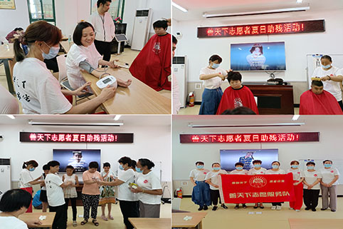 7月27日,慈联善天下志愿服务队的9位志愿者来到塔山街道残疾人之家,开展“夏日送清凉”活动,为他们理发、肩颈按摩、量血压、表演节目等,并送上夏季清凉用品。