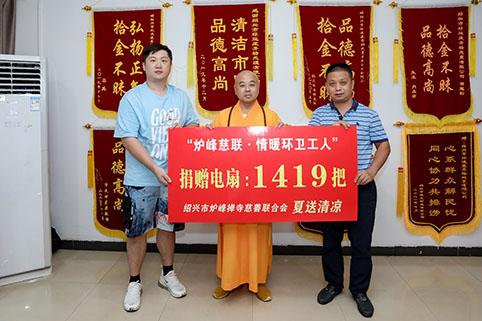 “天气虽然闷热,但我们的心里是凉爽的!”在绍兴从事环卫工作10多年的王阿姨, 脚边放着一台电风扇,手捧一大袋夏令用品,高兴地说。 进入三伏天以来,绍兴持续高温,开启“烧烤”模式,众多环卫工人依然兢兢业业,奋战在高温之中,为城市的干净整洁,辛勤工作着。 为关爱环卫工人,炉峰禅寺慈联会紧急订购一批电风扇,组织开展了“炉峰慈联·情暖环卫工人”夏送清凉活动,希望在炎炎夏日为他们送去一丝清凉。