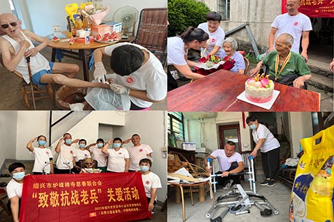 8月17日,慈联康乃馨志愿服务队的7位志愿者专赴嵊州,开展“致敬抗战老兵”关爱活动,看望慰问4位老兵爷爷,帮助安装床边扶手、马桶扶手、检查电路、理发、量血压、打扫卫生等,送上助行器和慰问物资,并为两位百岁老兵爷爷过生日,献上生日蛋糕和鲜花。
