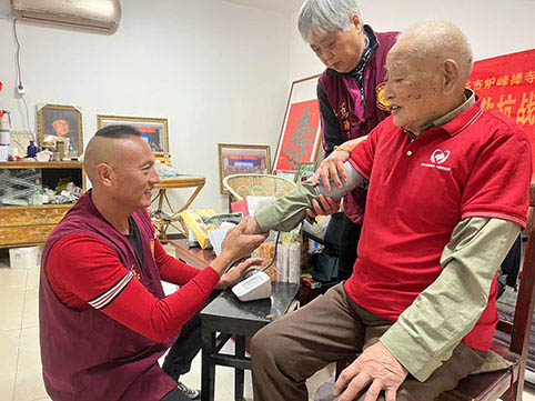 “梁爷爷,我们来看你了!” 近日,炉峰禅寺慈联会的志愿者们再次来到新昌县儒岙镇王渡里村,看望100岁的抗战老兵梁启源爷爷。 志愿者们到达时,梁爷爷正躺在床上。与之前相比,梁爷爷身体弱了很多,腿力明显下降,大部分时间只能躺在床上养息。 梁爷爷的儿子说,上次志愿者送来的助行器、扶手很实用,父亲以前起不了床,自从有了助行器,起床、上卫生间方便了不少,有时还能在家门口走几步。 当天,志愿者们为梁爷爷理发、量血压、剪指(趾)甲,把梁爷爷家里里外外打扫了一遍,还帮梁爷爷家人和邻居的头发也理了一下。志愿者笑着说,帮老兵爷爷搞好邻里关系! 老兵们年纪大了,不经常走动,脚趾甲很长,有的还有灰趾甲,志愿者每次要花很长时间才能修剪好。