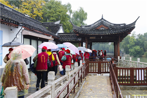 冬日江南,细雨绵绵,但寒冷抵挡不住志愿者的运动热情。上午10点,15支服务队的120多名志愿者齐聚绍兴治水广场,大家精神抖擞,充满朝气和活力。经过压腿、伸展等热身后,现场志愿者冒着小雨走上征途。全长3公里的环城河步道上,结伴竞走的志愿者步履矫健、英姿飒爽,红色的身影在古城河边汇成了一道流动的风景线,彰显着慈联的激情和活力。