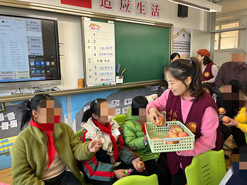 12月7日,慈联和平鸽志愿服务队在胡敏红队长的带领下,8名志愿者走进柯桥育才中学,为15名特殊儿童带去手指游戏、音乐游戏、创意美术等课程,指导孩子做成一条条可爱的“毛毛虫”和一个个“红苹果”,孩子们十分高兴,随着音乐一起舞动。