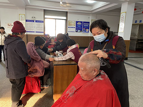 在各社区,志愿者们手上的银剪上下翻飞,没一会儿,老人家花白、凌乱的头发被修剪得整齐利落。细心的修剪手法,热情周到的服务,赢得老人们的一致点赞。