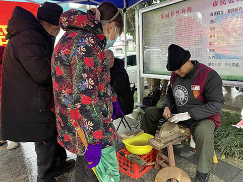 志愿者每月上门为方奶奶量血压、测血糖,开展义诊服务,老人感动地说:“你们真是新时代的活雷锋啊!”