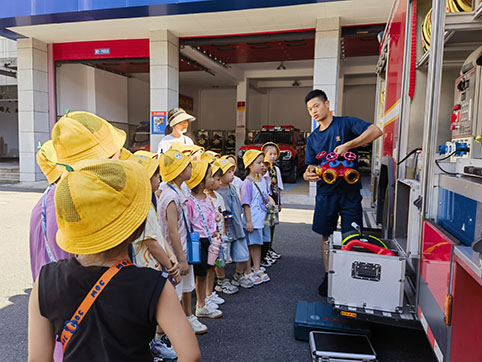 孩子们参观消防中队,上了一堂生动的消防安全教育课。