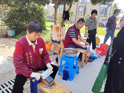 志愿者精湛的磨刀技能,为居民带来便利。